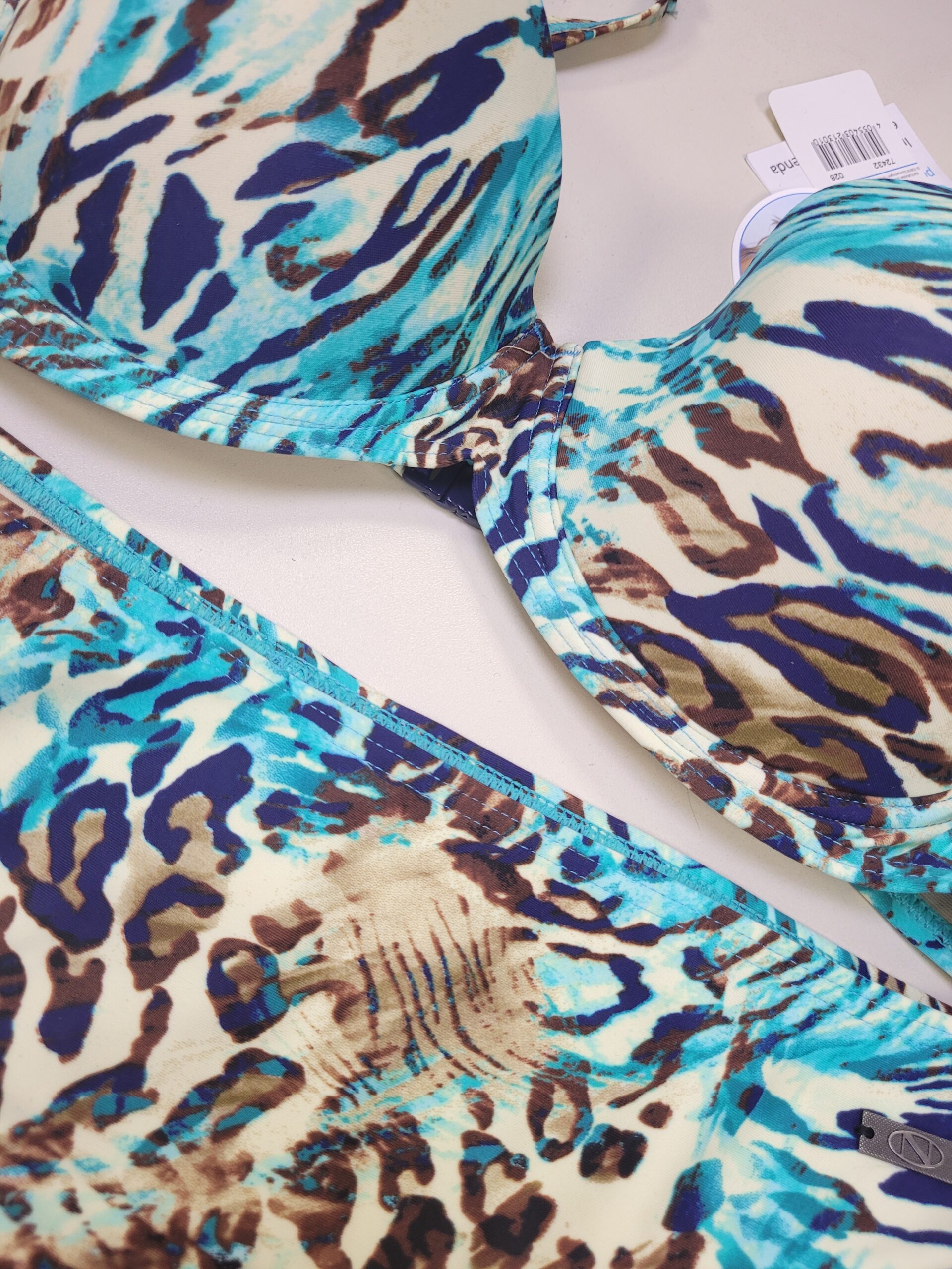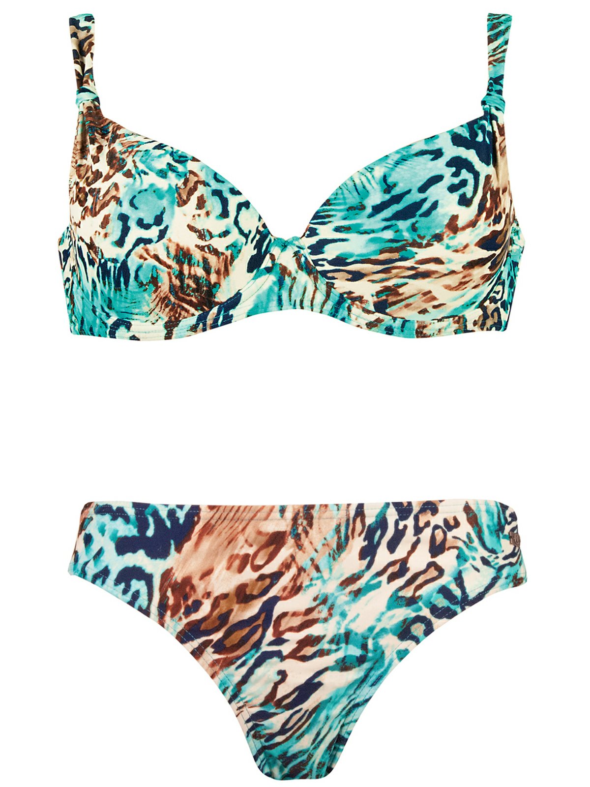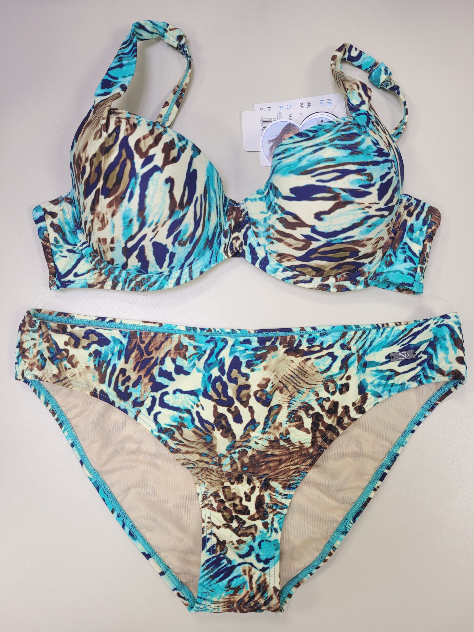 Ovaj atraktivni dvodelni kupaci kostim nemackog brenda Naturana ima postavljene korpe i zicu, dok je donji deo klasican slip model.