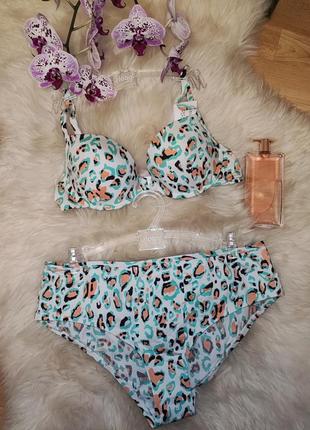 Ovaj kupaci kostim Nemackog brenda Sloggi, sastoji se od postavljenog gornjeg dela, vrlo blagih push up korpi, sa zicom, dok je donji deo dublji slip model, sirokih traka.